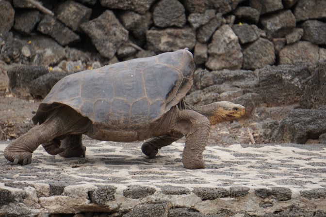 There they are breeding Giant Tortoises for eventual release back into the wild. We got to see both adults and babies. Tortoise shells have rings on them like trees, but they lose rings as they age instead of gaining them. The tortoises on each island have a unique shell shape. Some curve up like a saddle to allow the tortoise to reach higher vegetation.