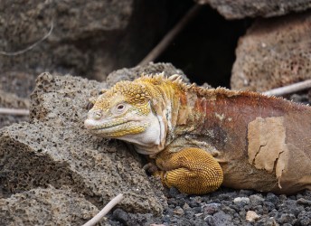 In addition to the tortoises, we got to see a land iguana at the Research Station. Unlike the dark colored marine iguanas, land iguanas are more orange and yellow. We toured a little visitor’s center there, which had a display about the history of Galapagos that was was interesting to read, although it was all in Spanish, so I could only understand some of it.